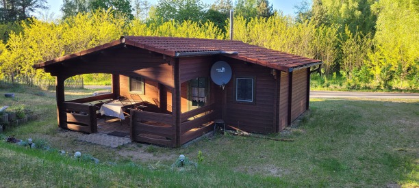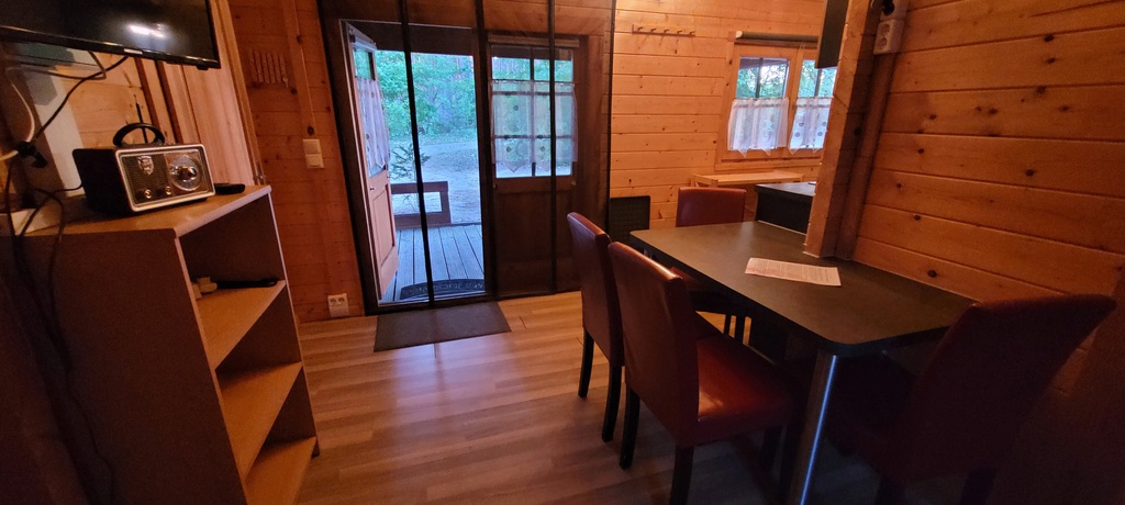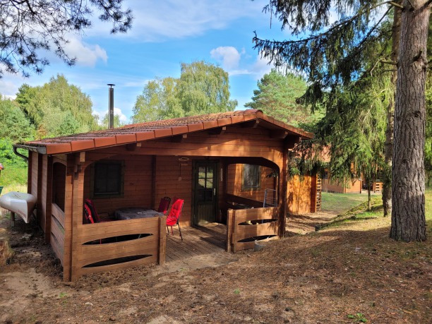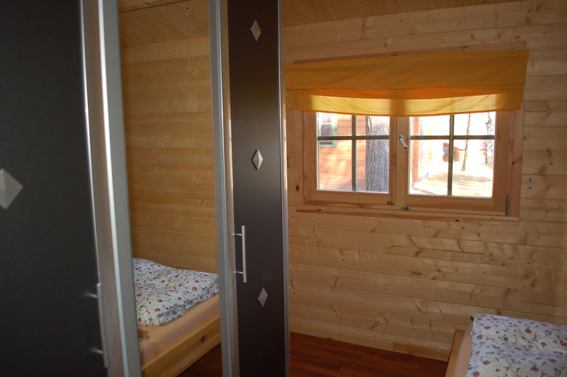 Es ist jeweils ein Holzbungalow mit einer offenen Wohn- Eßküche, Kamin und 2 Schlafzimmern.