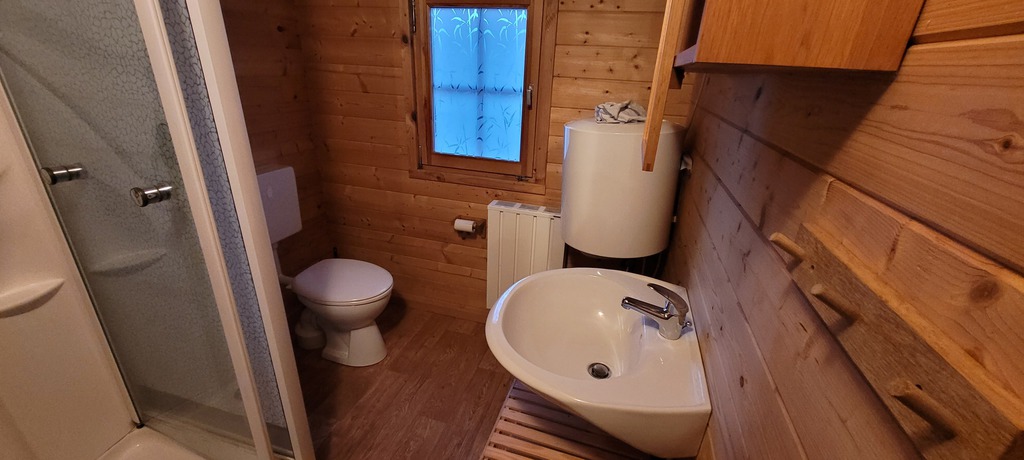Das Bad und der Wohnbereich verfügen über eine Elektroheizung.